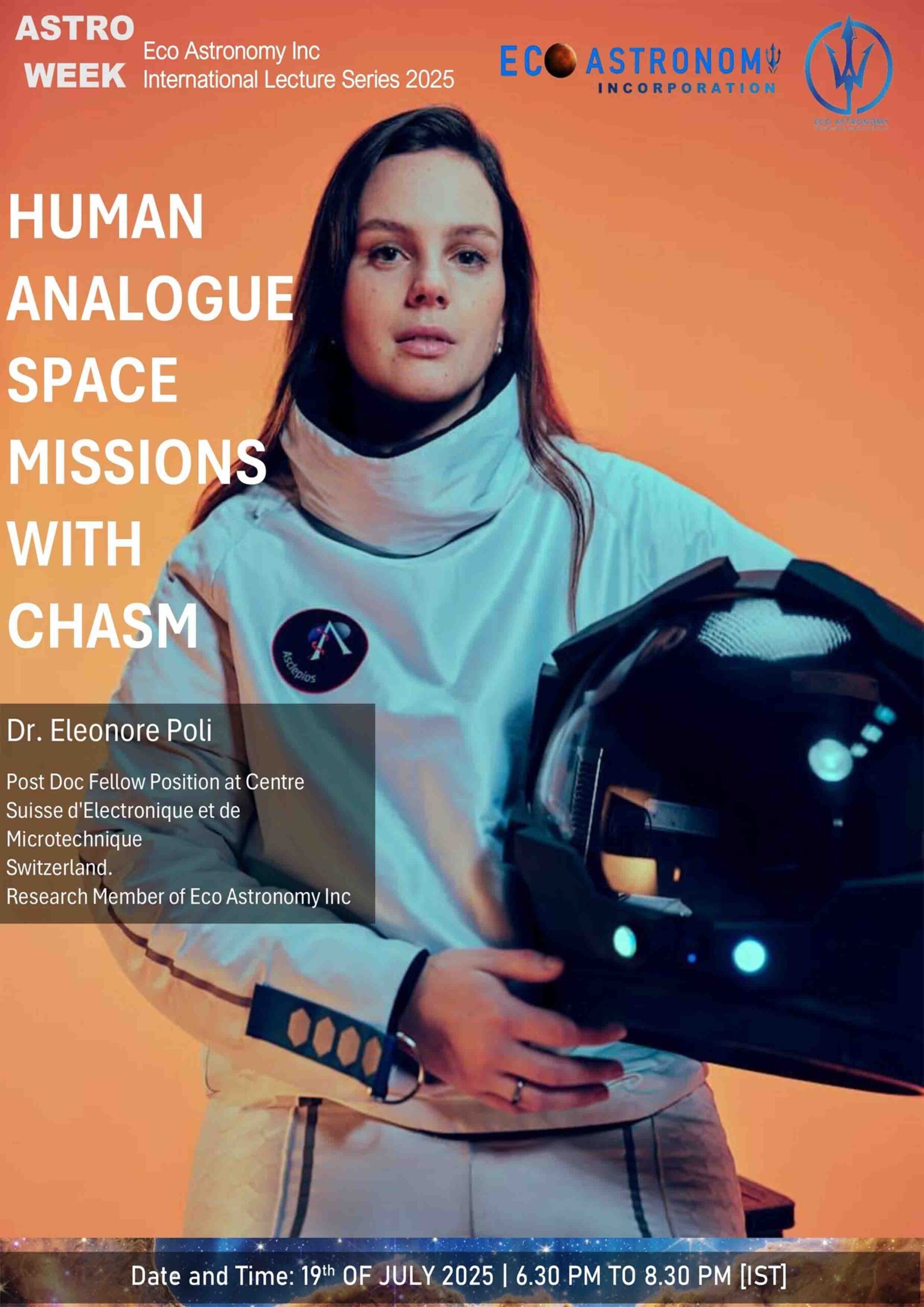 Guest Speaker : Dr. Eleonore Poli [Post Doc Fellow Position at Centre Suisse d’Electronique et de Microtechnique ] Switzerland. | Research Member of Eco Astronomy Inc.