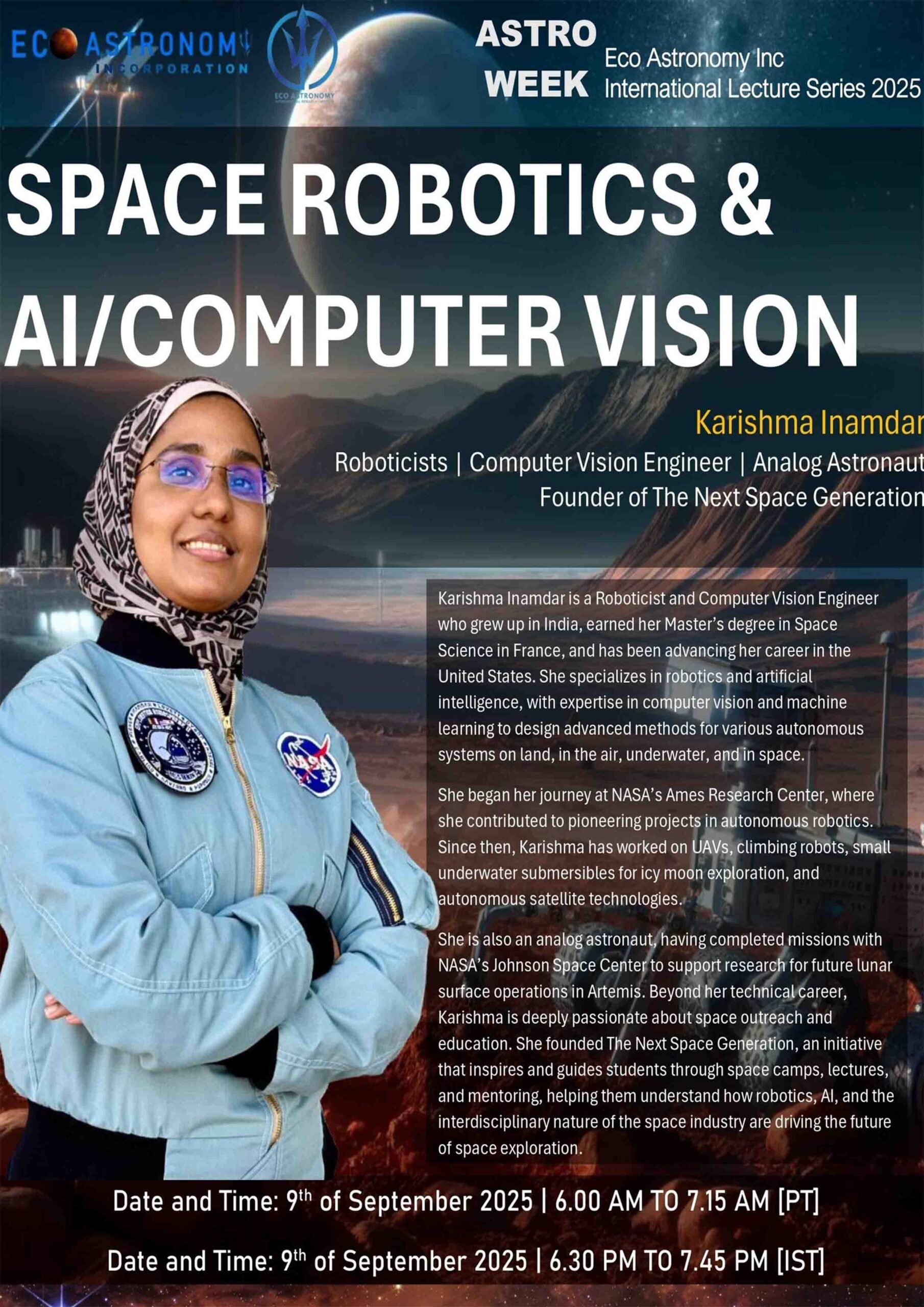Guest speaker : Karishma Inamdar [ Roboticists | Computer Vision Engineer | Analog Astronaut | Founder of The Next Space Generation]